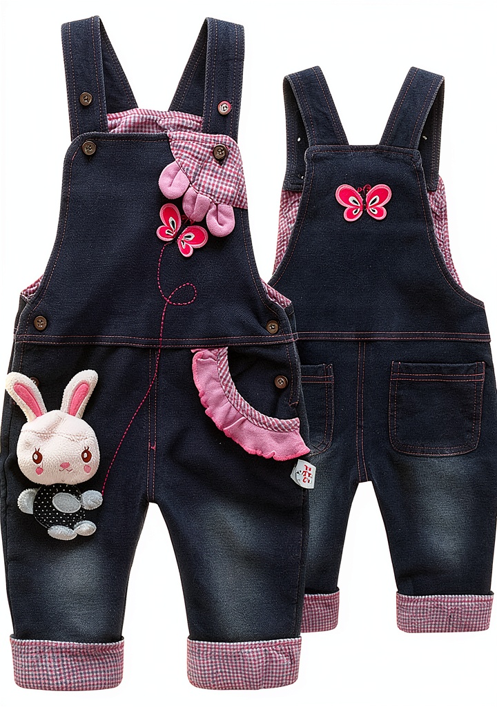 These knitted jean overalls are crafted for baby girls aged 3 months to 4 years, featuring a soft, stone-washed denim fabric that ensures comfort and durability. The design includes 3D cartoon bunny and butterfly embroidery, adding a playful touch, while adjustable straps and snap button closures provide a secure, customizable fit. Made from high-quality materials, these overalls protect your child from bruises during crawling and walking, making them a versatile addition to any wardrobe. Specifications include sizes ranging from 3-6 months to 3-4T, all in a stylish blue color, and they rank highly in baby girls’ clothing categories for their reliability and appeal.