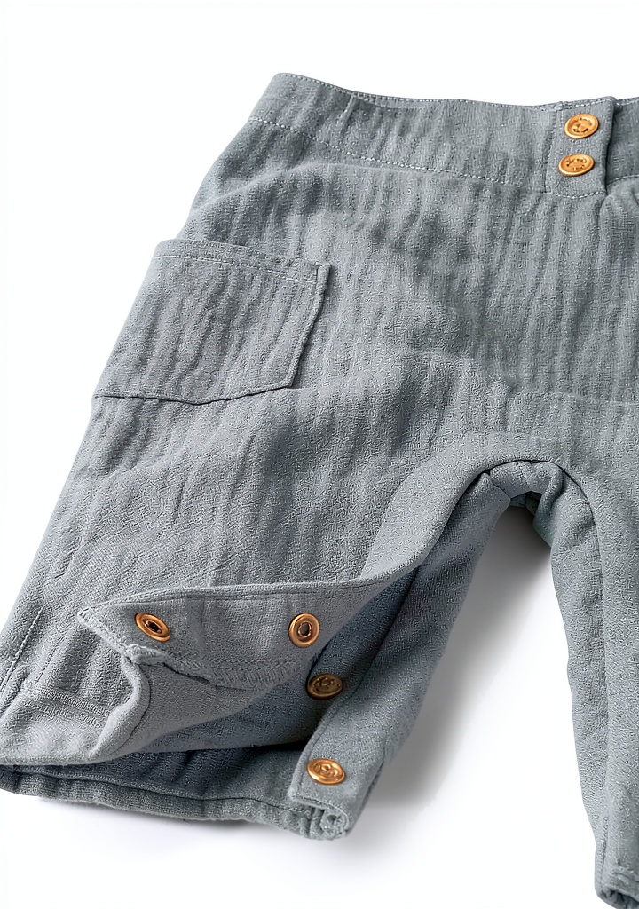 The overalls are made from GOTS-certified organic textiles, ensuring they are free from pesticides and harsh chemicals, making them safe and comfortable for sensitive baby skin.